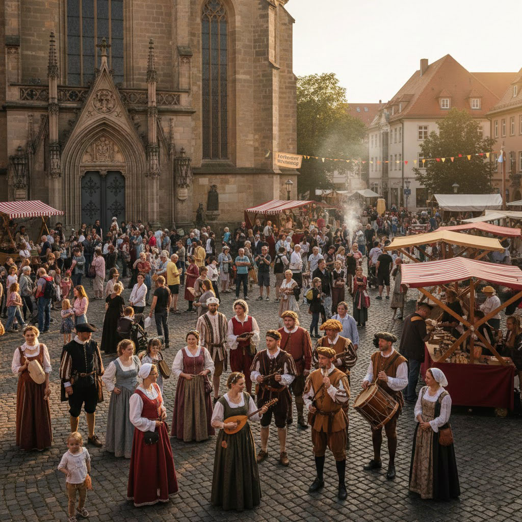 Ein großes Highlight ist der Mittelaltermarkt mit Ständen, Handwerk, Musik und traditioneller Kleidung – ein authentischer Blick in die Zeit Martin Luthers.