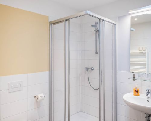 Zur Ausstattung gehören ein Schreibtisch, eine komfortable Sitzecke mit Ventilator sowie ein modernes Badezimmer mit Dusche, WC und Haartrockner. Für einen angenehmen Start in Ihren Aufenthalt steht kostenfreies Mineralwasser zur Begrüßung bereit.